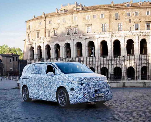 Mercedes shows off upcoming VLE multi-purpose vehicle, driving from Stuttgart to Rome