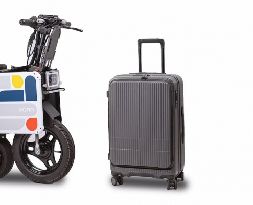 This electric motorcycle folds down to the size of a carry-on suitcase