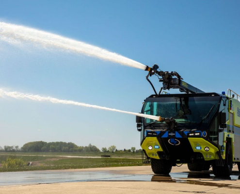 The Oshkosh-built Striker Volterra Electric Aircraft Rescue…