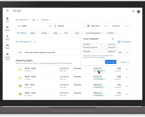 Google Flights now lets you see estimated carbon emissions for planned trips