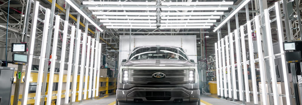 Ford has officially started full production of the F-150 Lightning electric pickup truck at the Rouge Electric Vehicle Center.