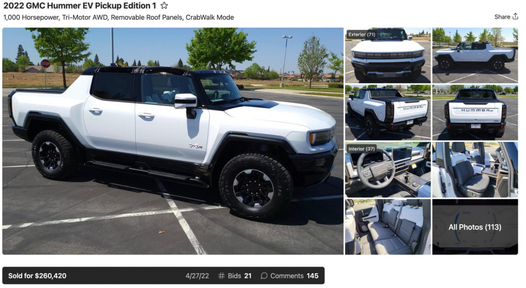 The GMC Hummer EV pickup is hitting the sweet spot of hype and scarcity that is sending the price of new units in auction surging to now over $250,000 per truck.