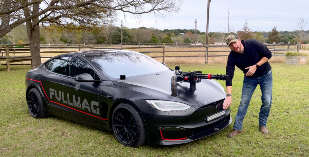 The post Tesla Model S Plaid gets a minigun in the frunk and night vision appeared first on Electrek.